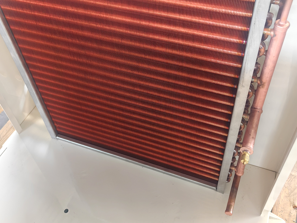 A copper-fin condenser is a heat exchange device that utilizes copper fins and tubes. It is widely used in refrigeration, air conditioning, and industrial thermal management systems. Its structure typically consists of copper tubes connected to densely packed copper fins through mechanical expansion or brazing to increase the heat transfer surface area and improve heat transfer efficiency.