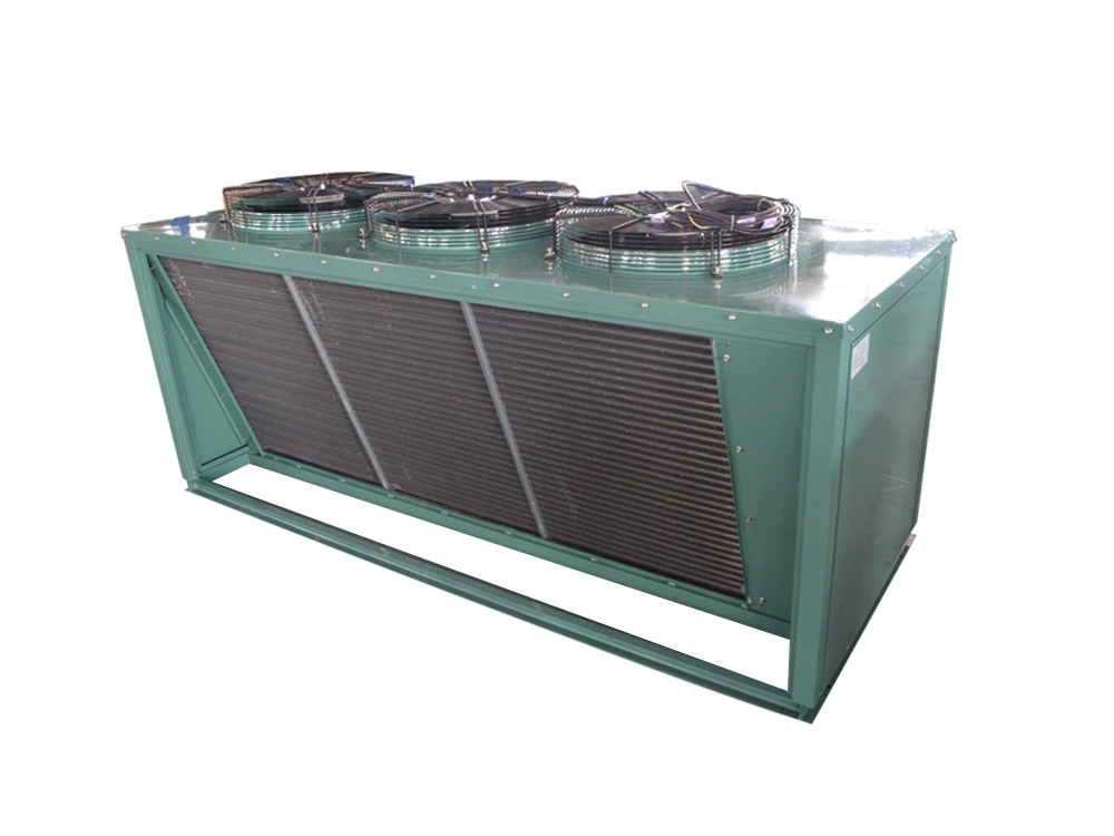 The FNV single-layer split condenser (three-motor) features a split design, with the condensing unit separated from the main system, allowing for independent installation and maintenance. Equipped with three independent motors, each driving multiple condensing fans, it offers staged start/stop functionality and adjustable speed to accommodate varying environmental conditions and heat loads. The housing is typically constructed of corrosion-resistant coated steel, while the interior features a high-efficiency heat exchange structure with threaded copper tubes and aluminum fins, supporting a variety of refrigerant types. The overall structure balances heat dissipation efficiency with operational stability, making it suitable for medium to large refrigeration or heat pump systems.