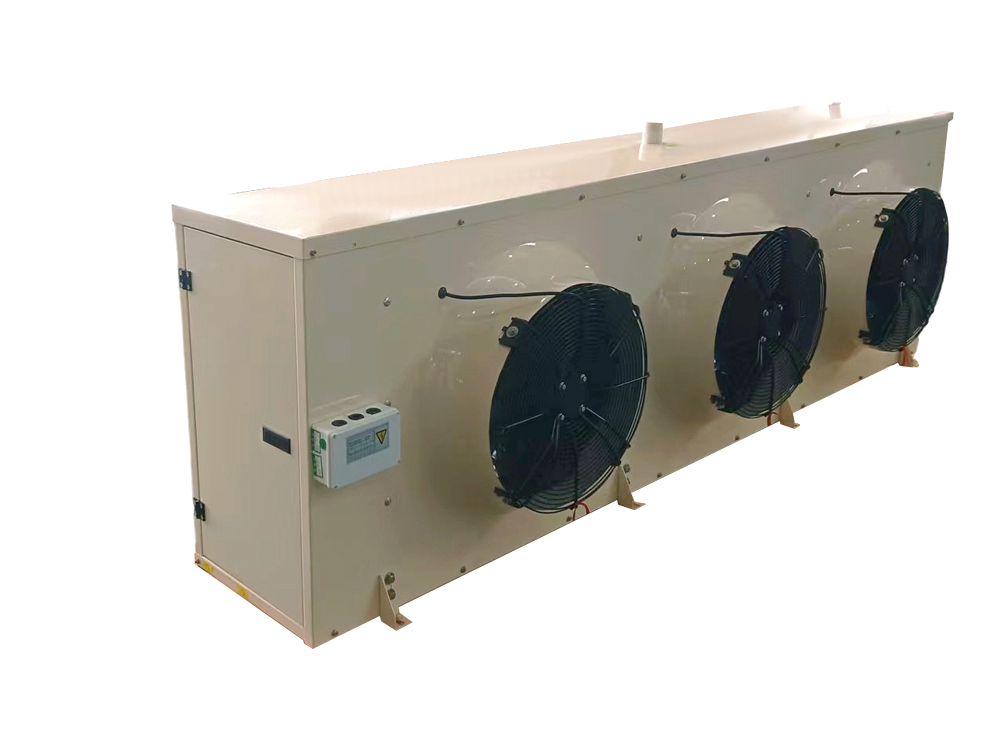 This high-tensile, customizable air cooler features four air ducts designed for enhanced ventilation and heat transfer performance. It utilizes high-efficiency internally threaded copper tubes and aluminum fins, combined with a specially designed distributor, to enhance heat exchange efficiency and overall performance. A pressure gauge port facilitates testing and adjustment of evaporator performance, ensuring stable and reliable operation. The overall design emphasizes practicality and efficiency, making it suitable for a variety of industrial environments and meeting the customized needs of diverse customers.
