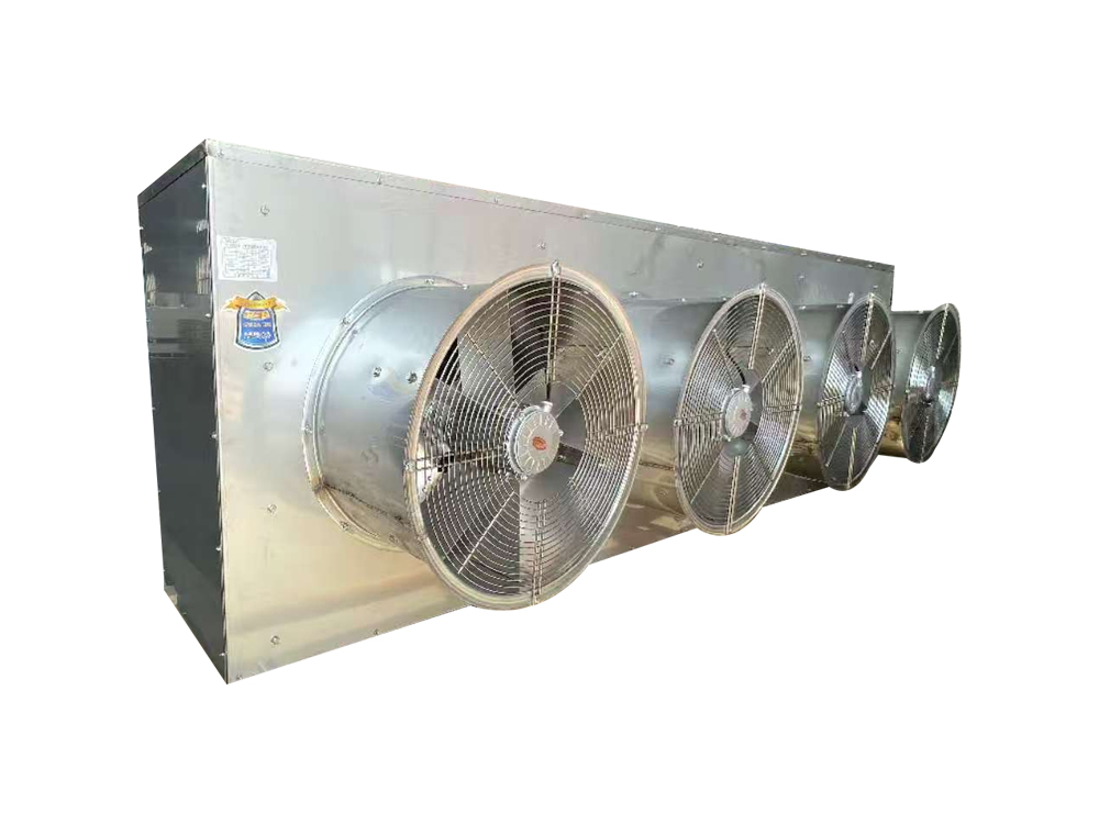 Stainless steel air duct with stainless steel mesh cover. The air cooler is constructed of high-quality stainless steel, offering excellent corrosion resistance and aesthetics, making it suitable for a variety of industrial and commercial applications. The stainless steel mesh cover enhances the unit's protection, effectively preventing foreign matter from entering and improving operational safety. The air cooler boasts a rational design, high air volume, low noise, and uniform air delivery and rapid cooling, making it particularly suitable for environments requiring high temperature control, such as cold storage and freezers. It is also easy to install and maintain.