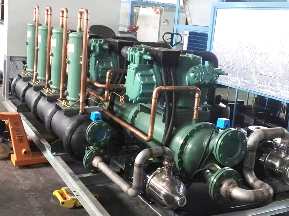 A water-cooled chiller is a mechanical device that uses water as a cooling medium to achieve refrigeration. It is widely used in air conditioning systems or process cooling processes in commercial buildings, industrial sites, and large public facilities. This type of chiller primarily consists of a compressor, evaporator, condenser, and throttling device, and relies on the phase change cycle of the refrigerant within the system to transfer heat.