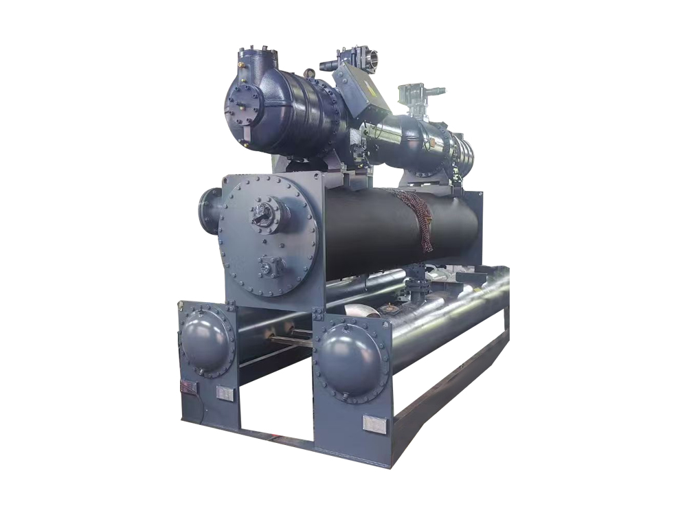 During operation, the evaporator absorbs heat from the chilled water, lowering its temperature before supplying it to the end equipment. The heat-carrying refrigerant is compressed by the compressor and then enters the condenser, where it is released to the ambient air through the cooling water. The cooling water is typically cooled and recycled through a cooling tower, thereby improving system energy efficiency.